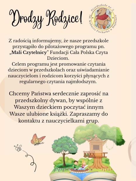 Prosimy o zapoznanie się z procedurami bezpieczeństwa wywieszonymi w małym holu, przy wejściu do przedszkola.