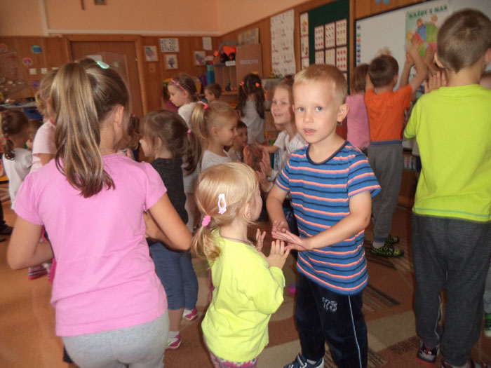 Dnia 22.09.2017r. nauczycielki grupy trzylatków i sześciolatków zorganizowały dla swoich wychowanków imprezę z okazji Ogólnopolskiego Dnia Przedszkolaka pod hasłem ,,Ja i ty". Celem jej było: dostarczenie dzieciom okazji do świętowania, wesołej zabawy i czerpania radości z bycia przedszkolakiem oraz integrowania się i nawiązywanie bliższego kontaktu między dziećmi młodszymi i starszymi. Dzieci z obu grup zaprezentowały piosenki, wspólne tańce i pląsy. Przedszkolaki świetnie się bawiły, na zakończenie zostały zaproszone do wspólnego poczęstunku owocowo - warzywnego.Przygotowały: Barbara Dmitruk, Ewa Anchimiuk 12.10.2017