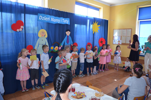 Dnia 25 maja w grupie „Biedroneczek” odbyła się uroczystość z okazji Dnia Mamy i Taty. Tego dnia dzieci były bardzo podekscytowane, a jednocześnie zadowolone, ponieważ w sposób wyjątkowy wyrażały swoją wdzięczność, szacunek a nade wszystko okazały swoją miłość do swoich kochanych rodziców. Po wspaniałych występach w których dzieci zaprezentowały swoje zdolności recytatorskie, wokalne i taneczne na twarzach rodziców zauważyć można było tylko jedno – wzruszenie i dumę ze swoich pociech. Po zakończonej części artystycznej dzieci wręczyły rodzicom prezenty i zaprosiły na słodki poczęstunek. Atmosfera tej uroczystości była podniosła ale i bardzo radosna przebiegała w niezwykle rodzinnej i miłej atmosferze. /Agnieszka Charytonow, Ewelina Wasiluk/