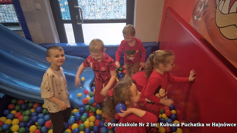 Mikołaj nie przyszedł z pustymi rękami — każde dziecko otrzymało drobny, świąteczny upominek, który wywołał wiele uśmiechów i wzruszeń. Po pożegnaniu wyjątkowego gościa przyszedł czas na kolejną niespodziankę: wyjście do sali zabaw „Fiku Miku”. Tam „Króliczki” mogły wyszaleć się na zjeżdżalniach, basenach z piłeczkami i konstrukcjach wspinaczkowych.