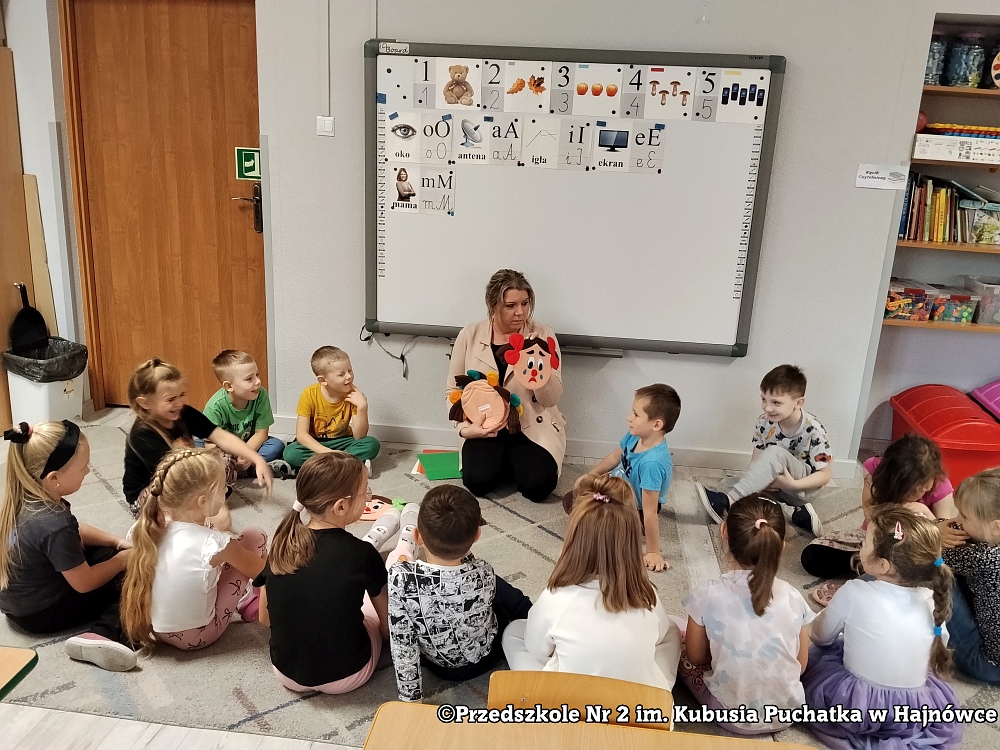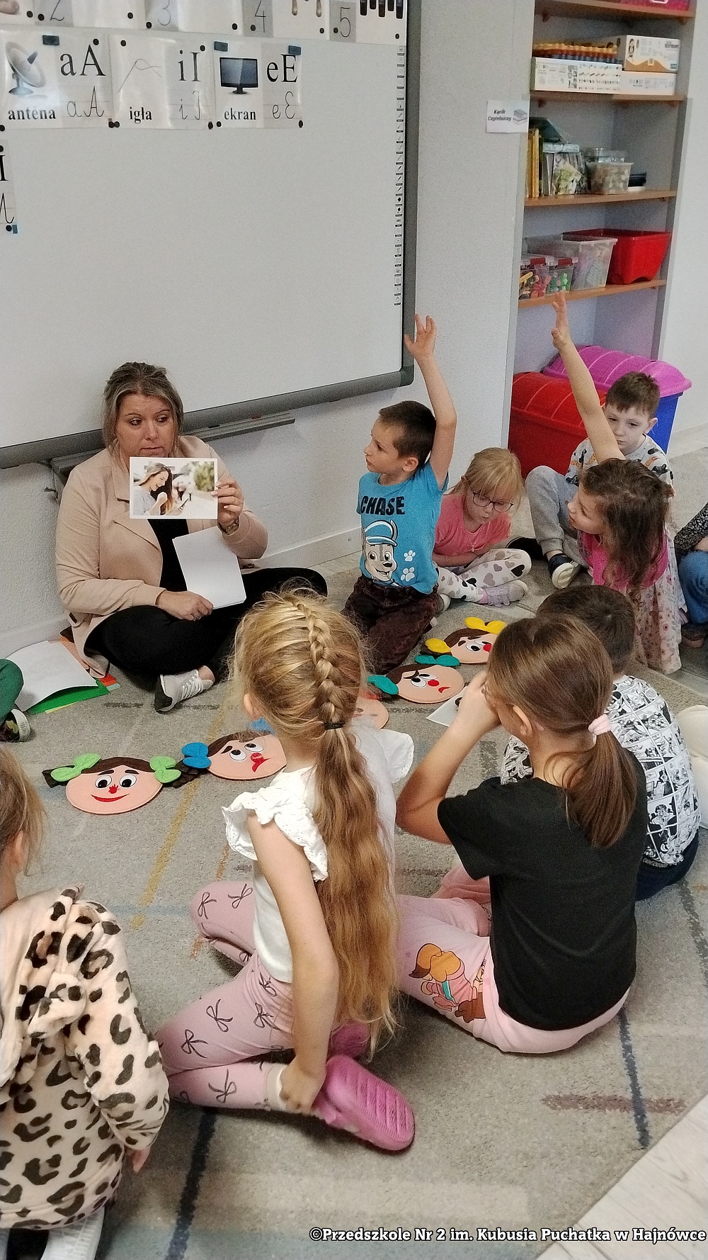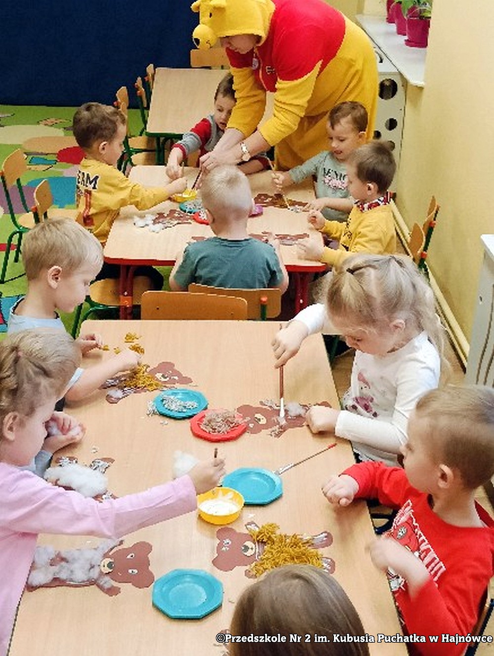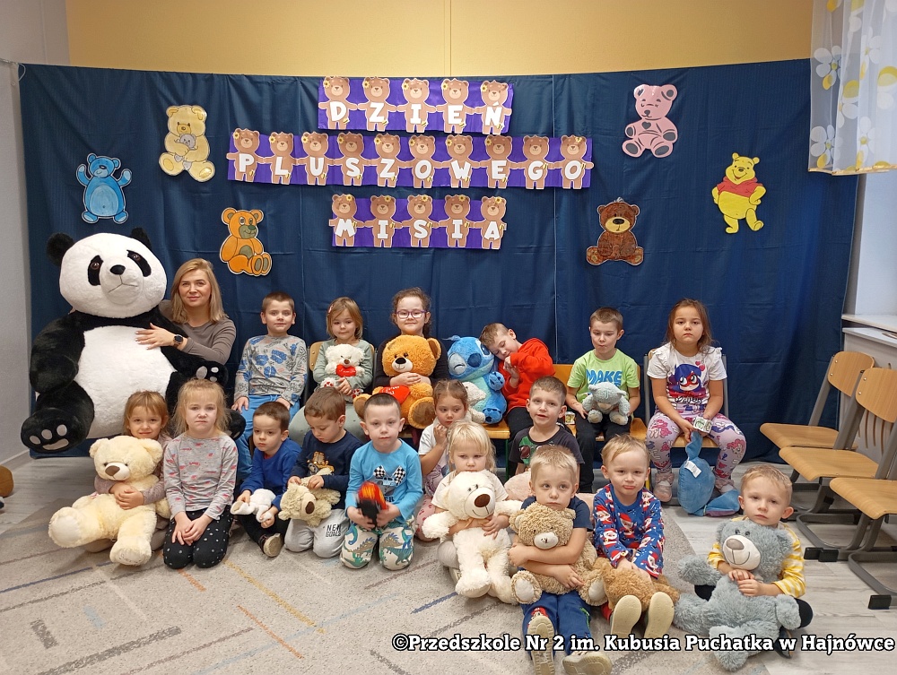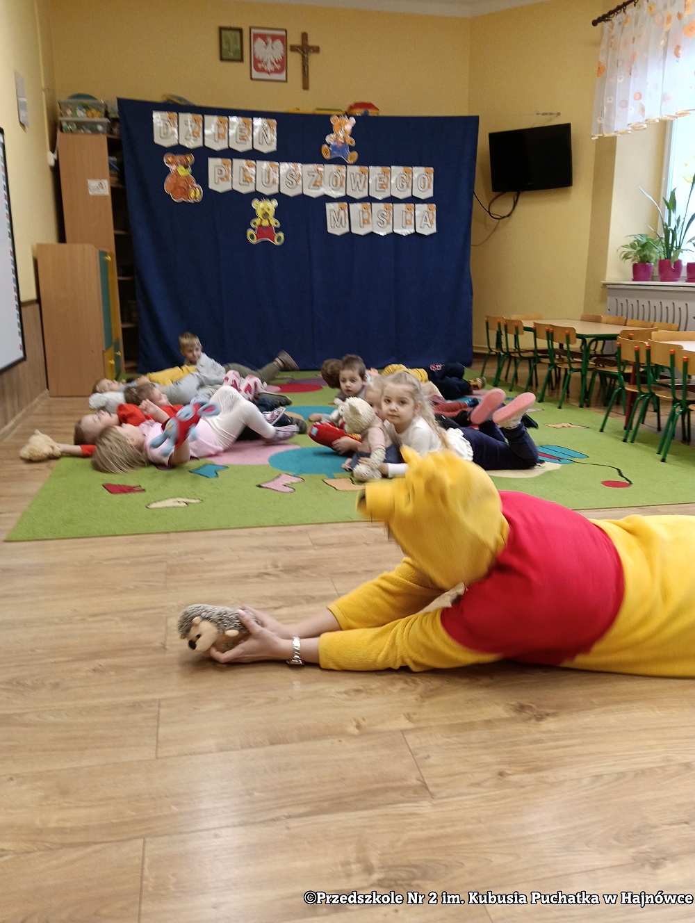 W naszej grupie ten dzień miał wyjątkowy, pełen ciepła i radości charakter. Dzieci z samego rana przyszły do sali z własnymi pluszowymi przyjaciółmi, które tego dnia były honorowymi gośćmi. Na początku zajęć każde dziecko mogło zaprezentować swojego pluszaka, opowiadając o jego imieniu, historii oraz o tym, dlaczego jest dla niego wyjątkowy. To wspaniałe ćwiczenie rozwijające umiejętności językowe, odwagę i zdolność wypowiadania się na forum grupy. Następnie wspólnie z pedagogiem specjalnym odbyły misiowe zabawy i aktywności wspólne śpiewanie piosenek o misiach, zabawy ruchowe, takie jak „Misiowa gimnastyka”. Największym zainteresowaniem cieszyły prace plastyczne, w trakcie których dzieci mogły w sposób sensoryczny z wykorzystaniem nitek stworzyć własne „misiowe portrety”. Nie zabrakło także chwili wyciszenia – nauczycielki czytały fragmenty bajek o misiach. Dzieci z uwagą słuchały przygód Kubusia Puchatka, Misia Uszatka i innych bohaterów, rozwijając przy tym wyobraźnię i zainteresowanie literaturą dziecięcą.
