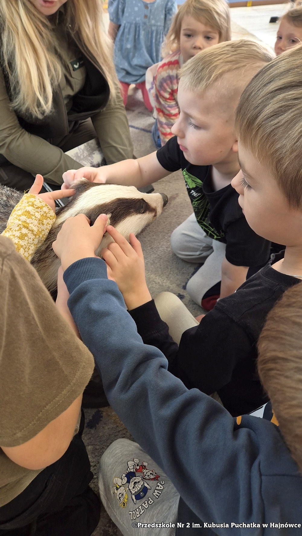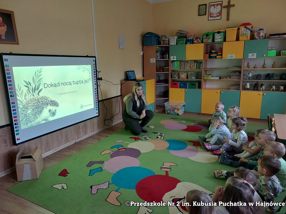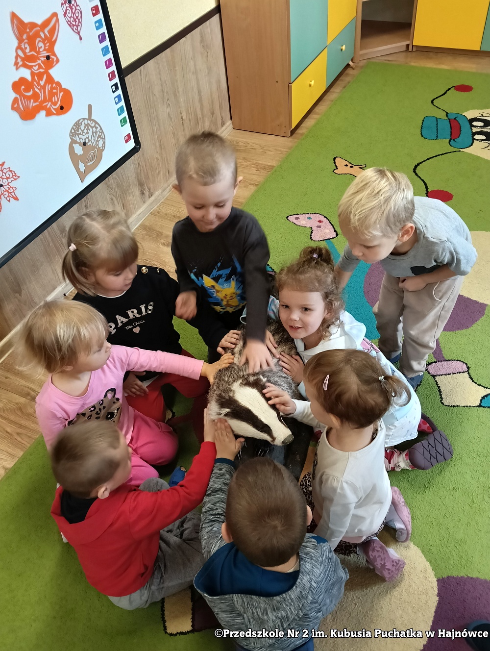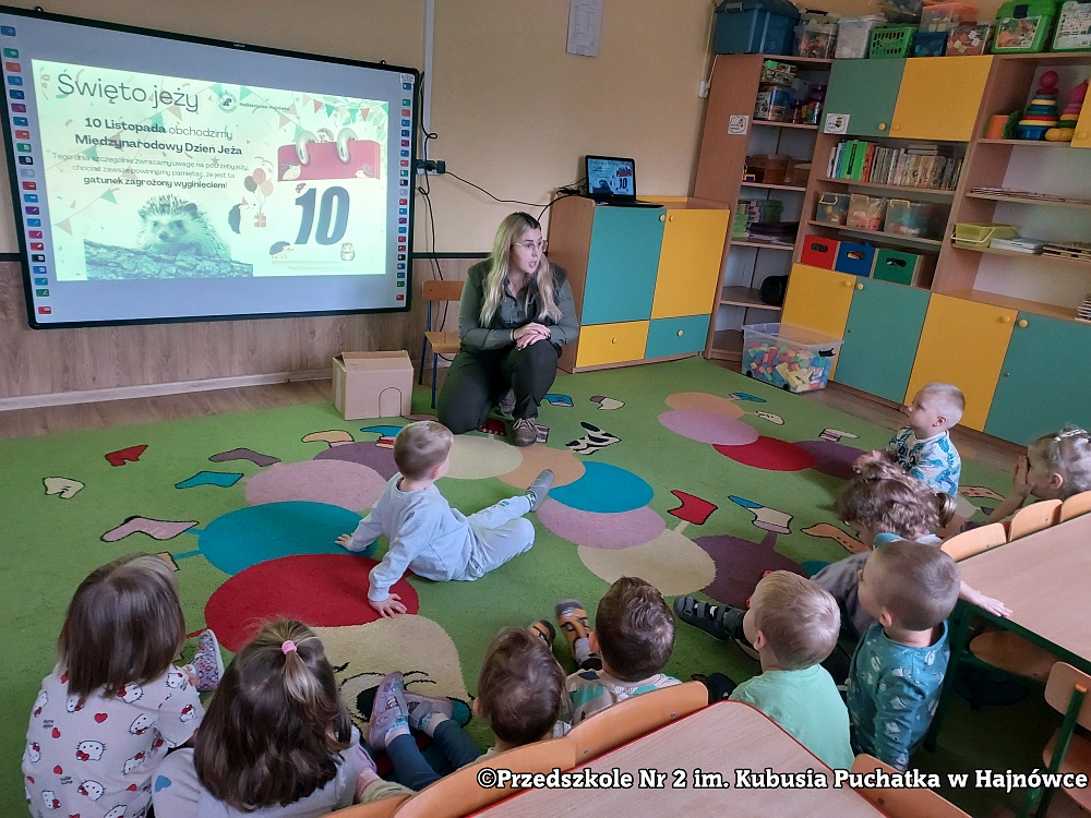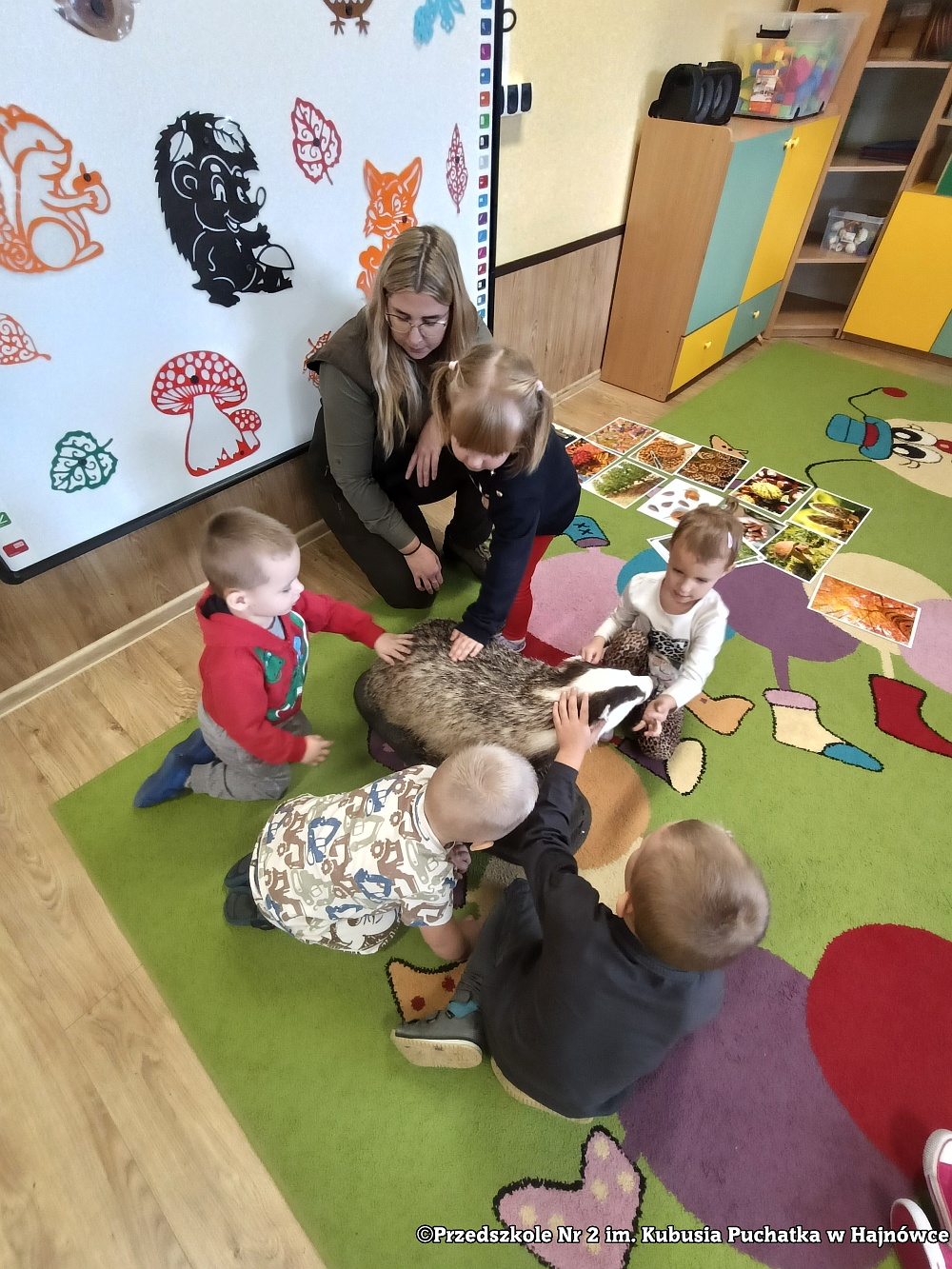 W naszym przedszkolu obchodziliśmy wyjątkowe święto – Dzień Jeża! Najmłodsza grupa przedszkolna – maluszki – uczestniczyła w spotkaniu z prawdziwym leśnikiem - panią Mają, która opowiedziała dzieciom wiele ciekawostek o życiu tych małych, kolczastych mieszkańców lasu. Podczas zajęć dzieci dowiedziały się, czym żywią się jeże, gdzie śpią zimą i dlaczego są tak pożyteczne. Dzieci z ogromnym zaciekawieniem słuchały opowieści gościa, a dzięki spotkaniu z leśnikiem mogły lepiej zrozumieć, jak ważna jest ochrona przyrody i dbanie o wszystkie stworzenia – nawet te najmniejsze. Na zakończenie spotkania Pani leśnik w prezencie zostawiła dzieciom "pluszowego jeża", któremu dzieci nadały imię Feluś. To był dzień pełen wrażeń, uśmiechu i nowej wiedzy o lesie!