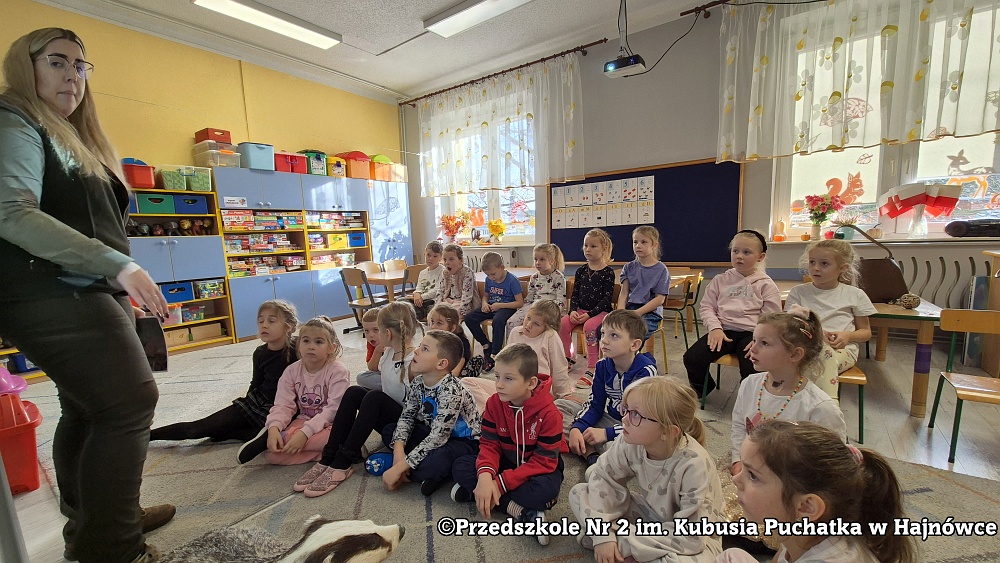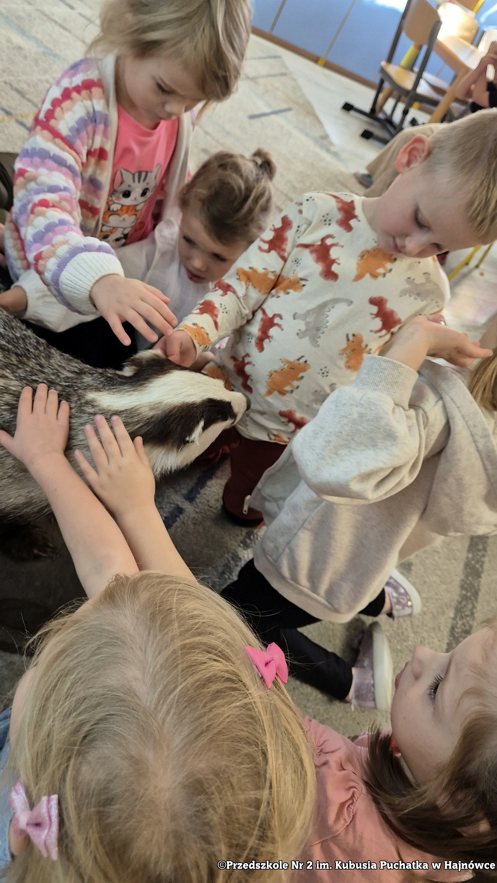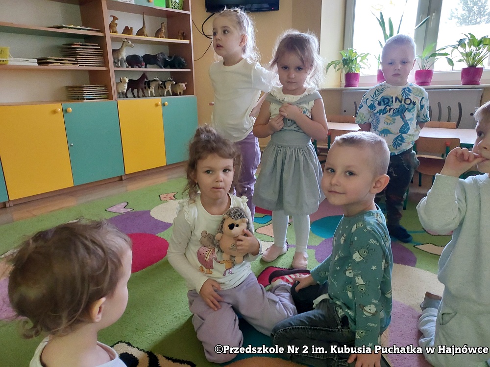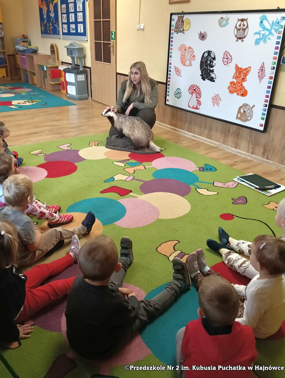 W naszym przedszkolu obchodziliśmy wyjątkowe święto – Dzień Jeża! Najmłodsza grupa przedszkolna – maluszki – uczestniczyła w spotkaniu z prawdziwym leśnikiem - panią Mają, która opowiedziała dzieciom wiele ciekawostek o życiu tych małych, kolczastych mieszkańców lasu. Podczas zajęć dzieci dowiedziały się, czym żywią się jeże, gdzie śpią zimą i dlaczego są tak pożyteczne. Dzieci z ogromnym zaciekawieniem słuchały opowieści gościa, a dzięki spotkaniu z leśnikiem mogły lepiej zrozumieć, jak ważna jest ochrona przyrody i dbanie o wszystkie stworzenia – nawet te najmniejsze. Na zakończenie spotkania Pani leśnik w prezencie zostawiła dzieciom "pluszowego jeża", któremu dzieci nadały imię Feluś. To był dzień pełen wrażeń, uśmiechu i nowej wiedzy o lesie!
