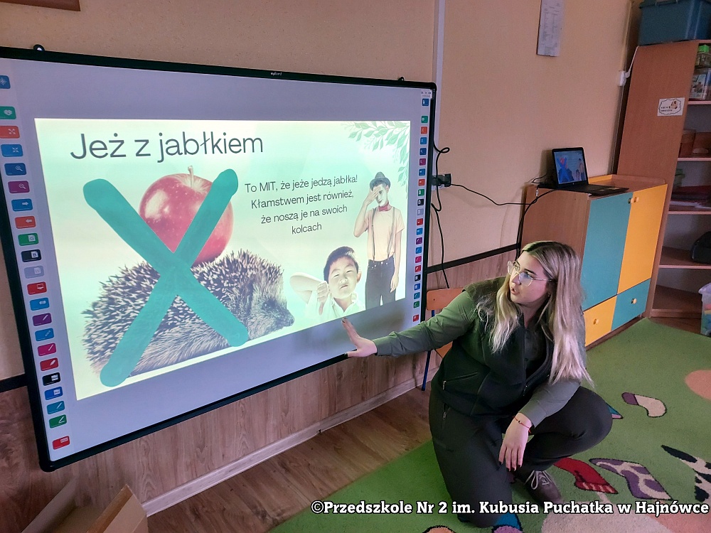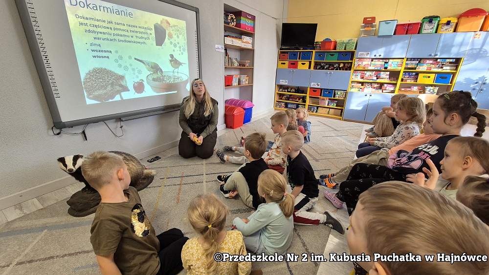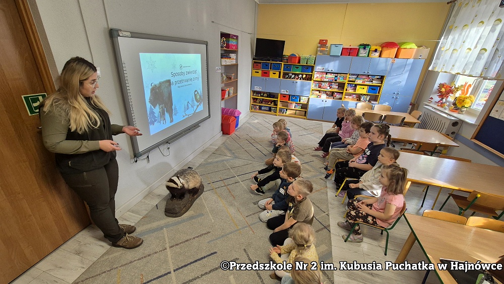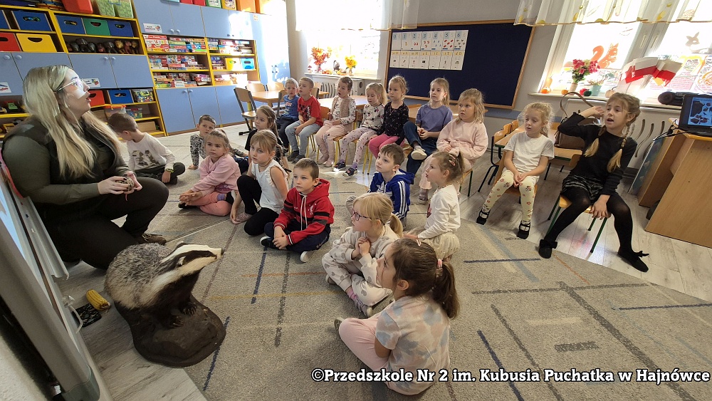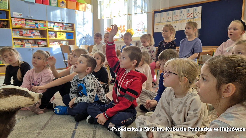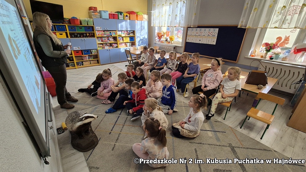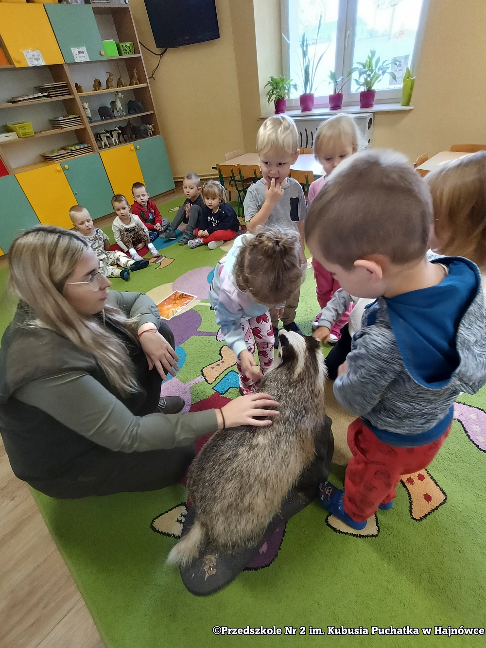 W naszym przedszkolu obchodziliśmy wyjątkowe święto – Dzień Jeża! Najmłodsza grupa przedszkolna – maluszki – uczestniczyła w spotkaniu z prawdziwym leśnikiem - panią Mają, która opowiedziała dzieciom wiele ciekawostek o życiu tych małych, kolczastych mieszkańców lasu. Podczas zajęć dzieci dowiedziały się, czym żywią się jeże, gdzie śpią zimą i dlaczego są tak pożyteczne. Dzieci z ogromnym zaciekawieniem słuchały opowieści gościa, a dzięki spotkaniu z leśnikiem mogły lepiej zrozumieć, jak ważna jest ochrona przyrody i dbanie o wszystkie stworzenia – nawet te najmniejsze. Na zakończenie spotkania Pani leśnik w prezencie zostawiła dzieciom "pluszowego jeża", któremu dzieci nadały imię Feluś. To był dzień pełen wrażeń, uśmiechu i nowej wiedzy o lesie!