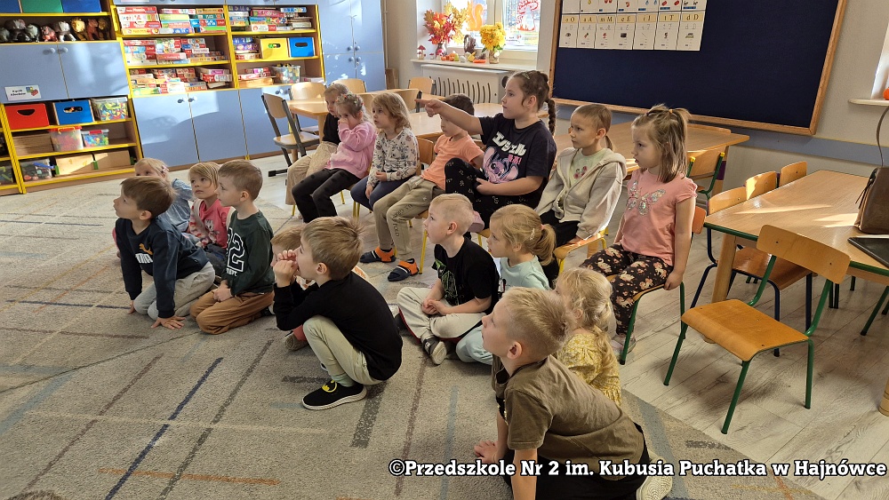 W środę 17 września grupa „Króliczków” wybrała się na wyjątkową wycieczkę do Hajnowskiego Domu Kultury. Pięcio- i sześciolatki miały okazję uczestniczyć w projekcji filmu animowanego „Niesamowite przygody skarpetek 2. Skarpetki górą”. Dzieci z ogromnym zainteresowaniem śledziły przygody niezwykłych bohaterów, którzy pokazali, że nawet zwykła skarpetka może przeżyć coś wyjątkowego. Film pełen humoru i ciepłych wartości wywołał wiele radości i uśmiechu, a także stał się okazją do rozmów o przyjaźni, odwadze i sile wyobraźni.
