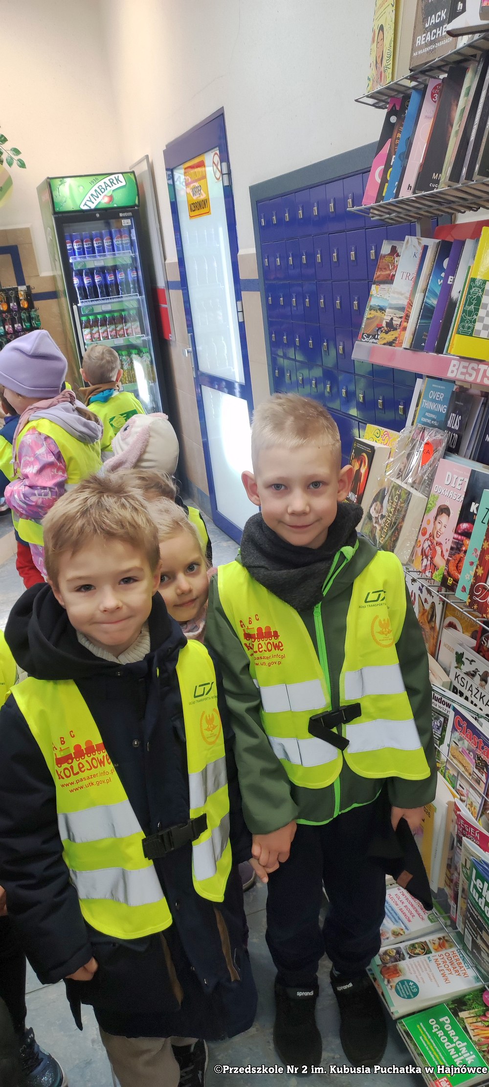 Na zdjęciu widoczne są dzieci podczas spaceru po dworcu kolejowym i wiadukcie.