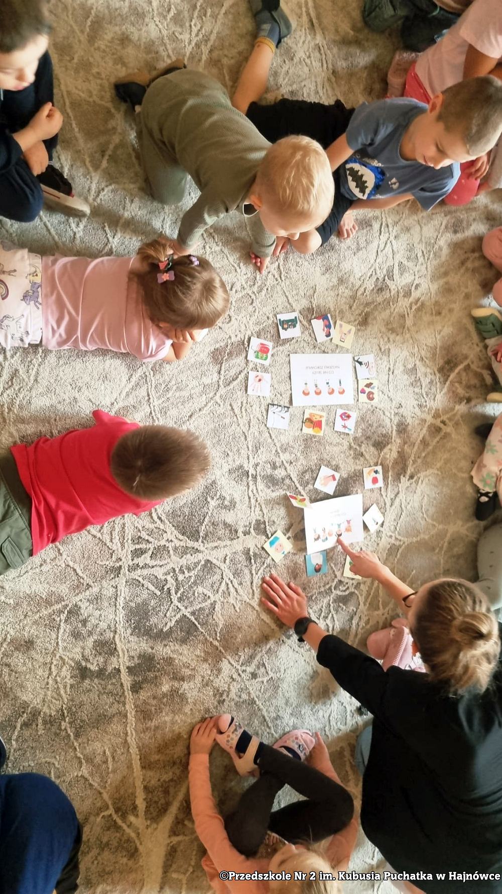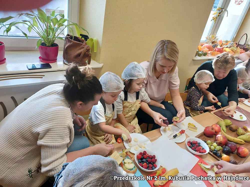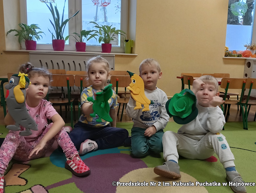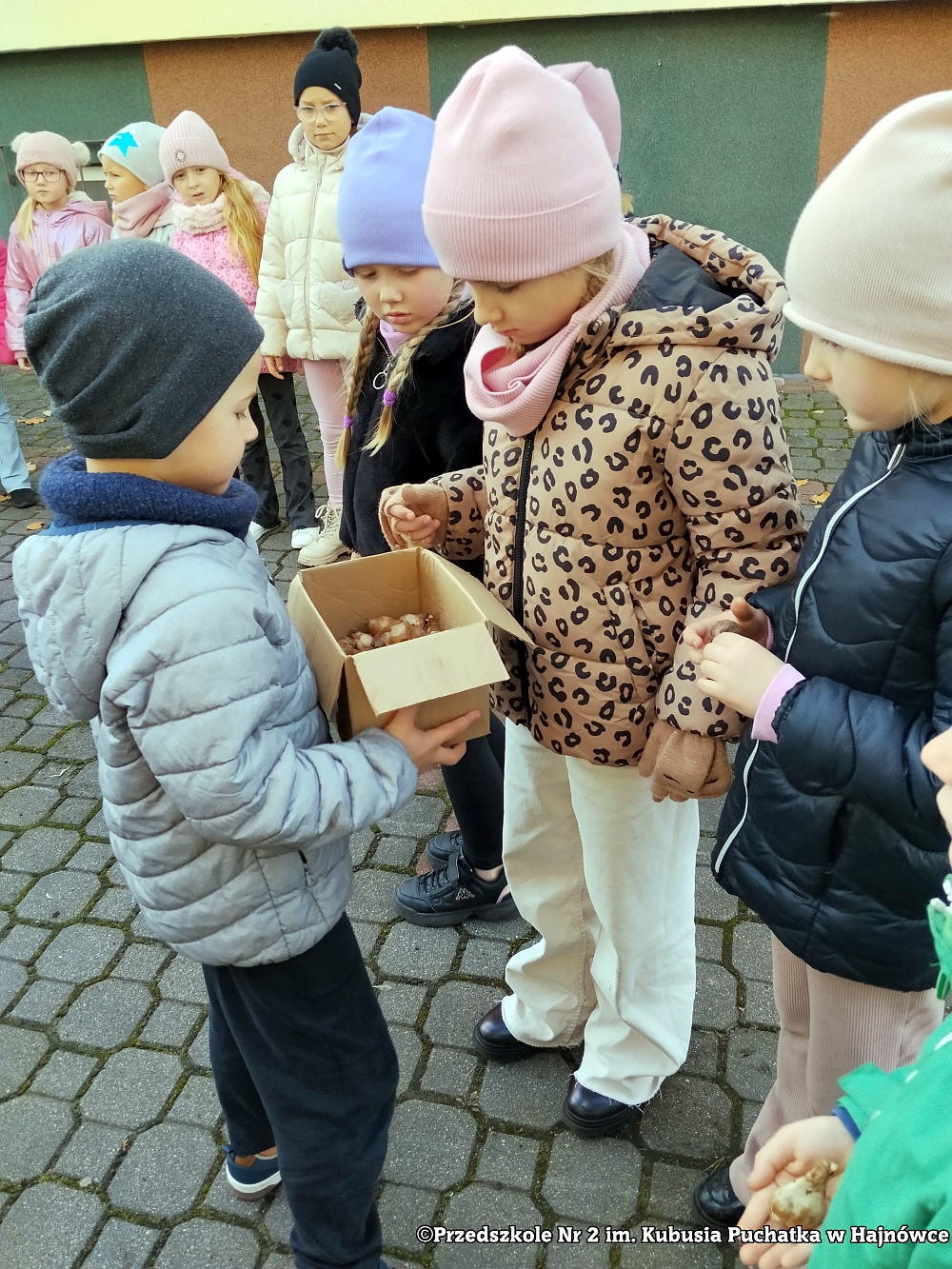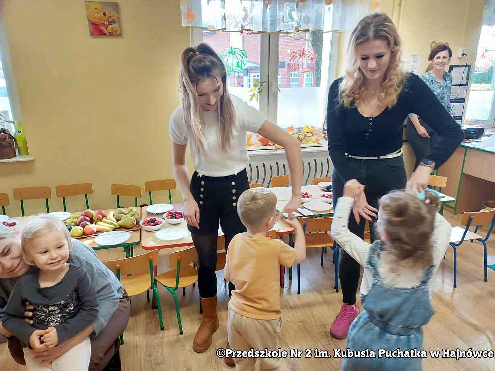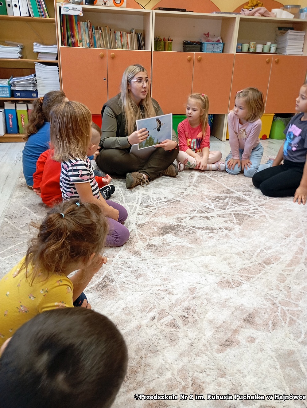 Grupa Puchatków uroczyście powitała nową porę roku – Panią Jesień, która będzie panować nam przez najbliższe miesiące. Podczas spotkania z Panią Mają, pracownikiem Nadleśnictwa Hajnówka wybraliśmy się na spacer do lasu w celu szukania pierwszych oznak jesieni. Pani Leśnik opowiedziała nam o zmianach zachodzących w przyrodzie, o jesiennych pracach zwierząt, wymienialiśmy a potem szukaliśmy darów jesiennego lasu tj. kasztany, żołędzie, jarzębina. Dziękujemy bardzo za wspólnie spędzony czas.