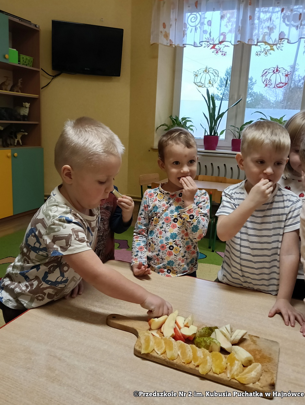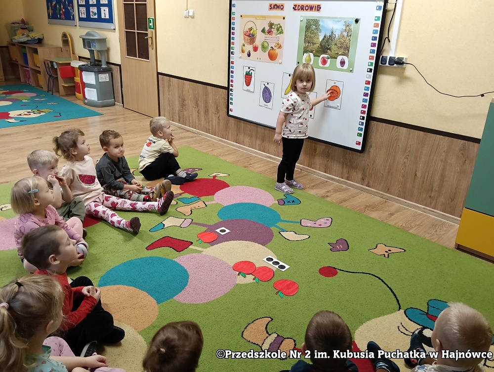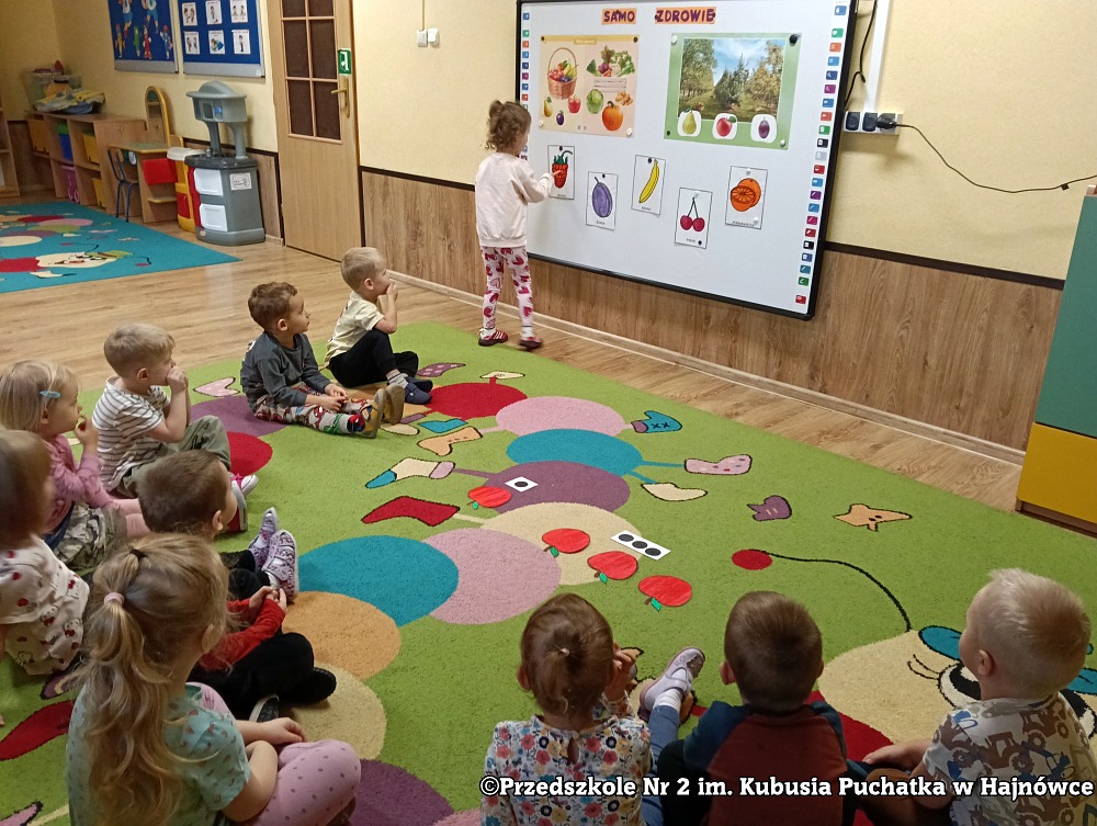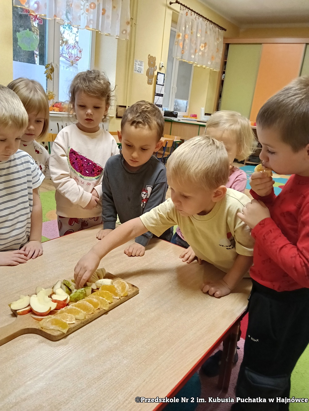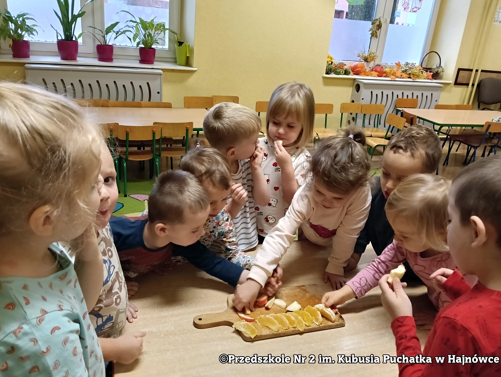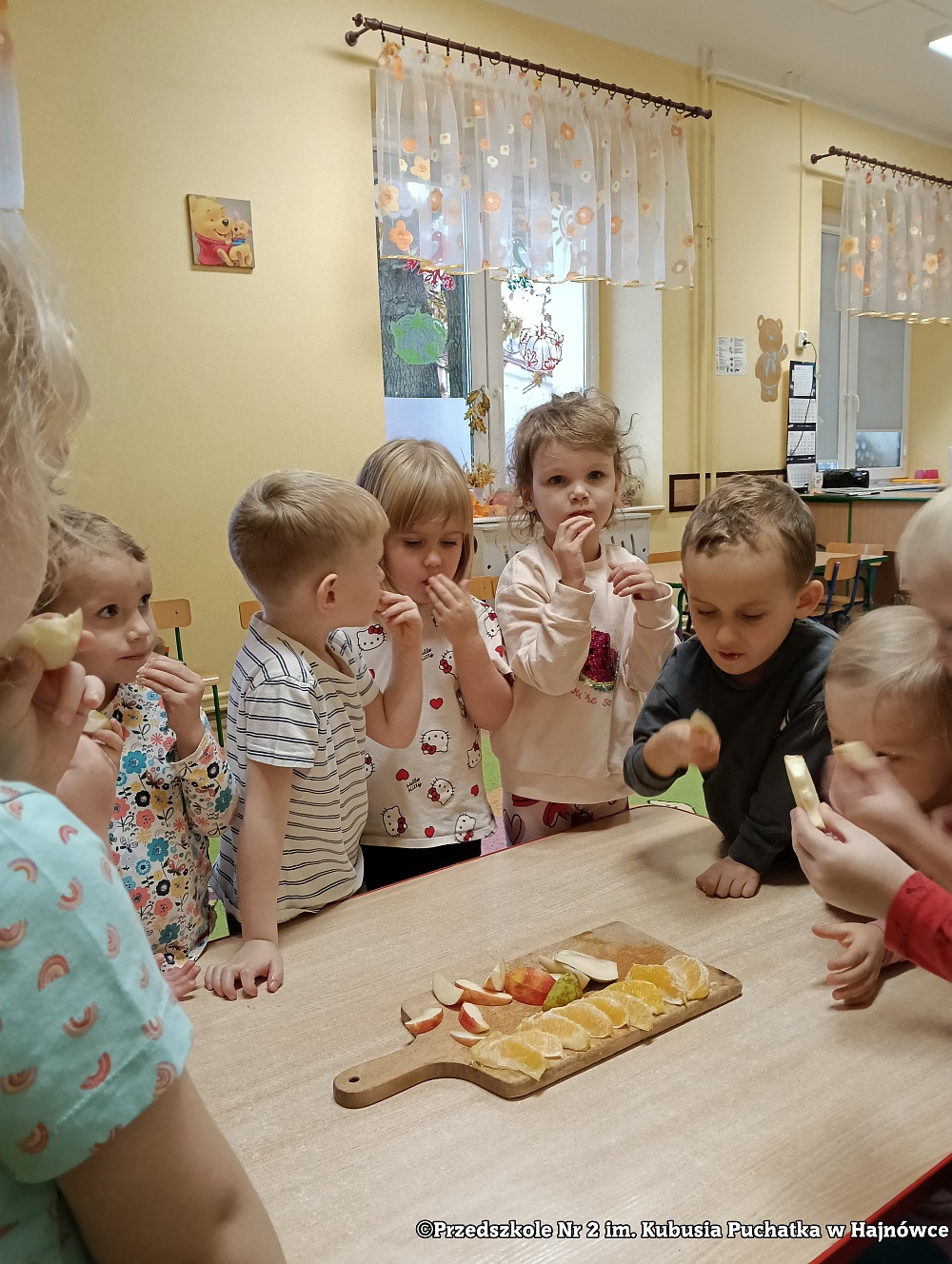 Grupa Puchatków uroczyście powitała nową porę roku – Panią Jesień, która będzie panować nam przez najbliższe miesiące. Podczas spotkania z Panią Mają, pracownikiem Nadleśnictwa Hajnówka wybraliśmy się na spacer do lasu w celu szukania pierwszych oznak jesieni. Pani Leśnik opowiedziała nam o zmianach zachodzących w przyrodzie, o jesiennych pracach zwierząt, wymienialiśmy a potem szukaliśmy darów jesiennego lasu tj. kasztany, żołędzie, jarzębina. Dziękujemy bardzo za wspólnie spędzony czas.