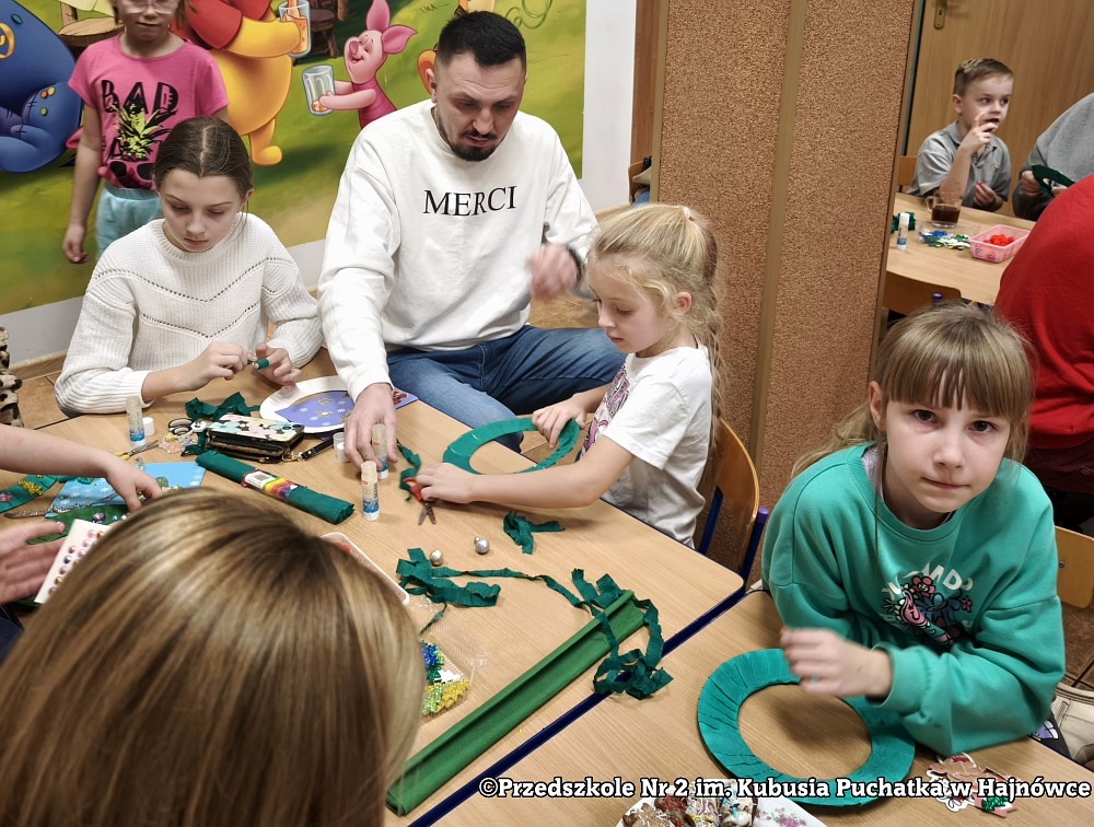 Warsztaty były również doskonałą okazją do rozmów o tradycjach bożonarodzeniowych oraz znaczeniu choinki jako jednego z najważniejszych symboli świąt. Wspólna praca sprzyjała integracji, wzajemnej pomocy i radosnej atmosferze.