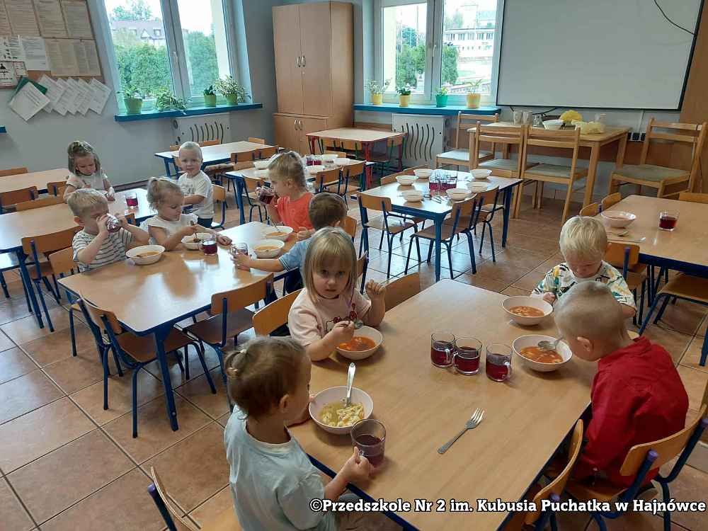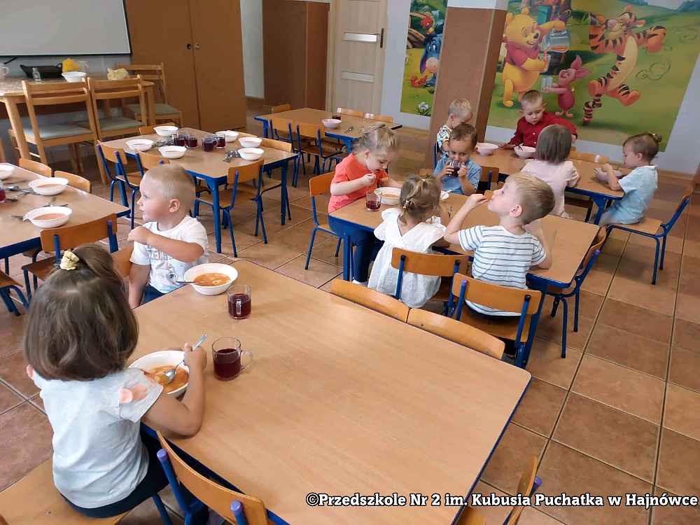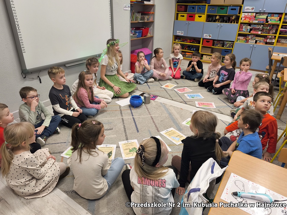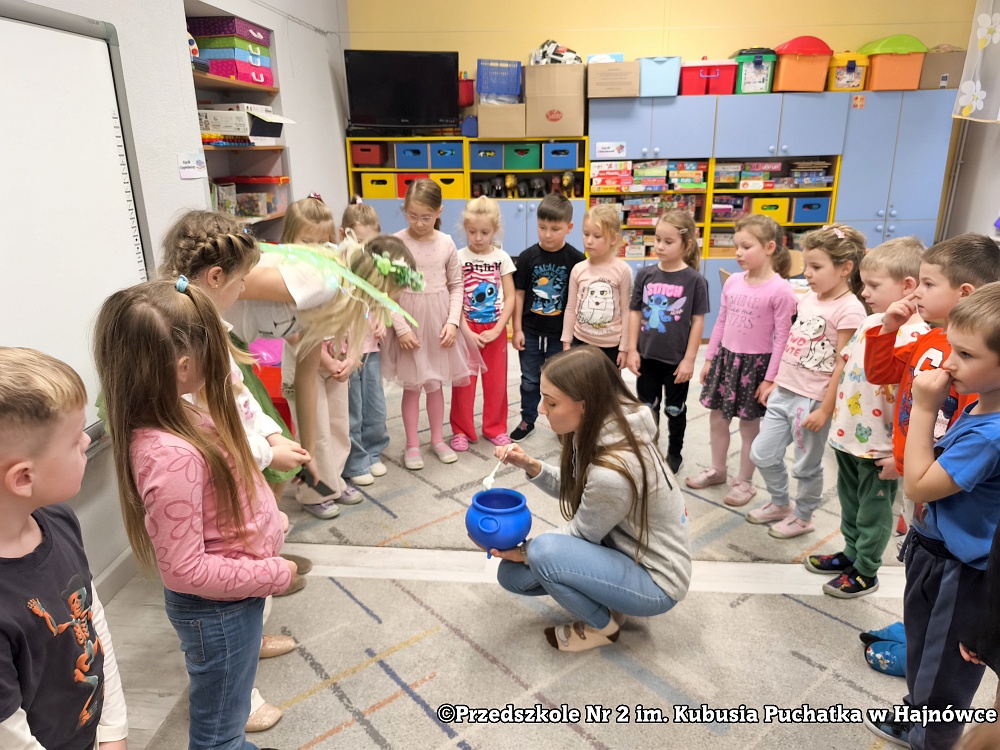 W najstarszej grupie Puchatki tematem warsztatów była "Zupa Super Mocy". Dzieci spotkały się z Żywieniową Wróżką, która zabrała je do świata warzyw i opowiedziała, co daje nam siłę, energię i zdrowy brzuszek. Przedszkolaki poznały warzywa wspierające odporność, odkryły sekrety super składników i stworzyły własne dodatki do zupy przy użyciu długopisów 3d.
