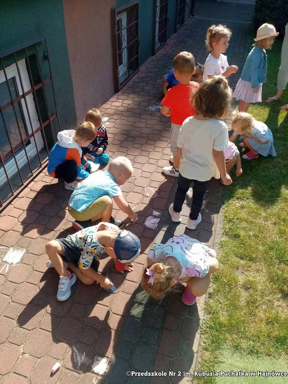 Wakacje w przedszkolu to czas pełen radości, ruchu i kreatywnej zabawy! W tym wyjątkowym czasie gościliśmy dzieci nie tylko z naszej placówki, ale również z innych hajnowskich przedszkoli. Wspólnie stworzyliśmy wakacyjną przestrzeń pełną przygód, gdzie każdy dzień przynosił nowe doświadczenia i uśmiechy. Dzieci uczestniczyły w różnorodnych zajęciach, które pozwalały im aktywnie spędzać czas w gronie rówieśników – przede wszystkim na świeżym powietrzu. Dużo radości przyniosły zabawy z chustą animacyjną Klanza, które rozwijały współpracę, koordynację i wyobraźnię. Nie zabrakło też gier zespołowych, podczas których dzieci uczyły się zdrowej rywalizacji, wzmacniały kondycję, zwinność i sprawność fizyczną – zarówno na placu zabaw, jak i w sali.