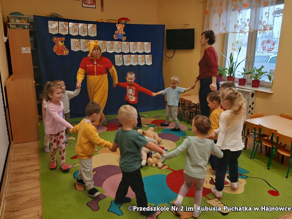 Opis galerii zdjęć: Na zdjęciach dzieci z grupy II, III i IV widoczne podczas obchodów Dnia Pluszowego Misia.