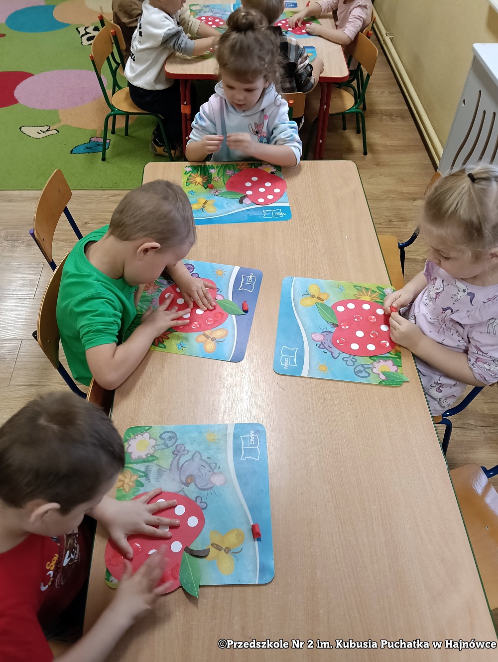 Opis galerii zdjęć: zdjęcia przedstawiają dzieci podczas zabaw z okazji Dnia Kropki.