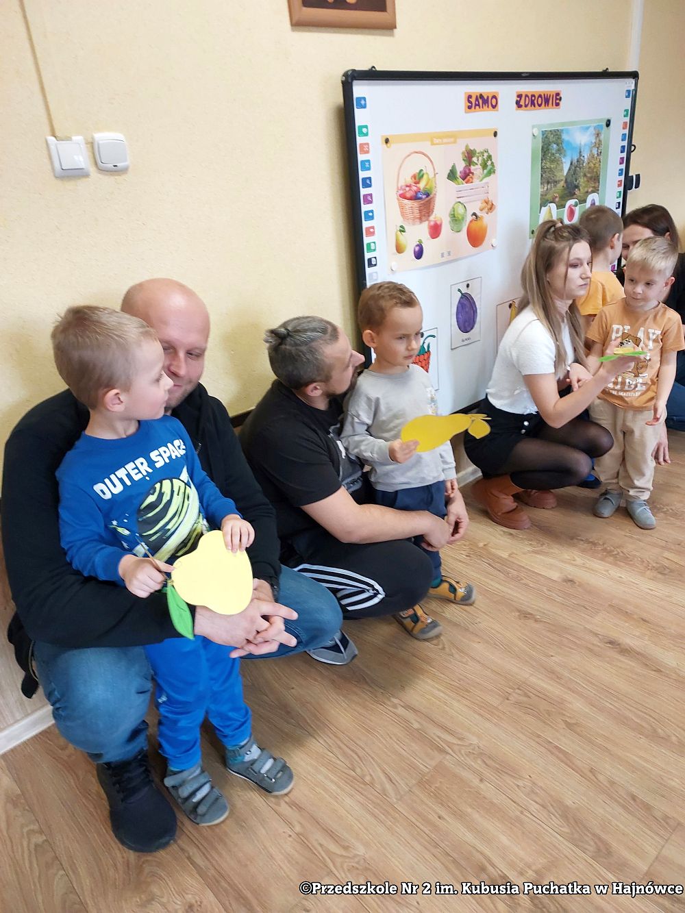 Opisgalerii zdjęć: Na fotografiach widnieją dzieci podczas spotkania z rodzicami na zajęciach otwartych.