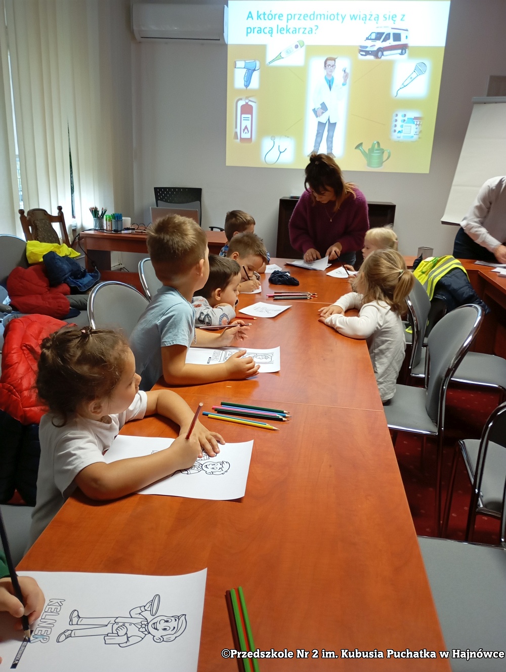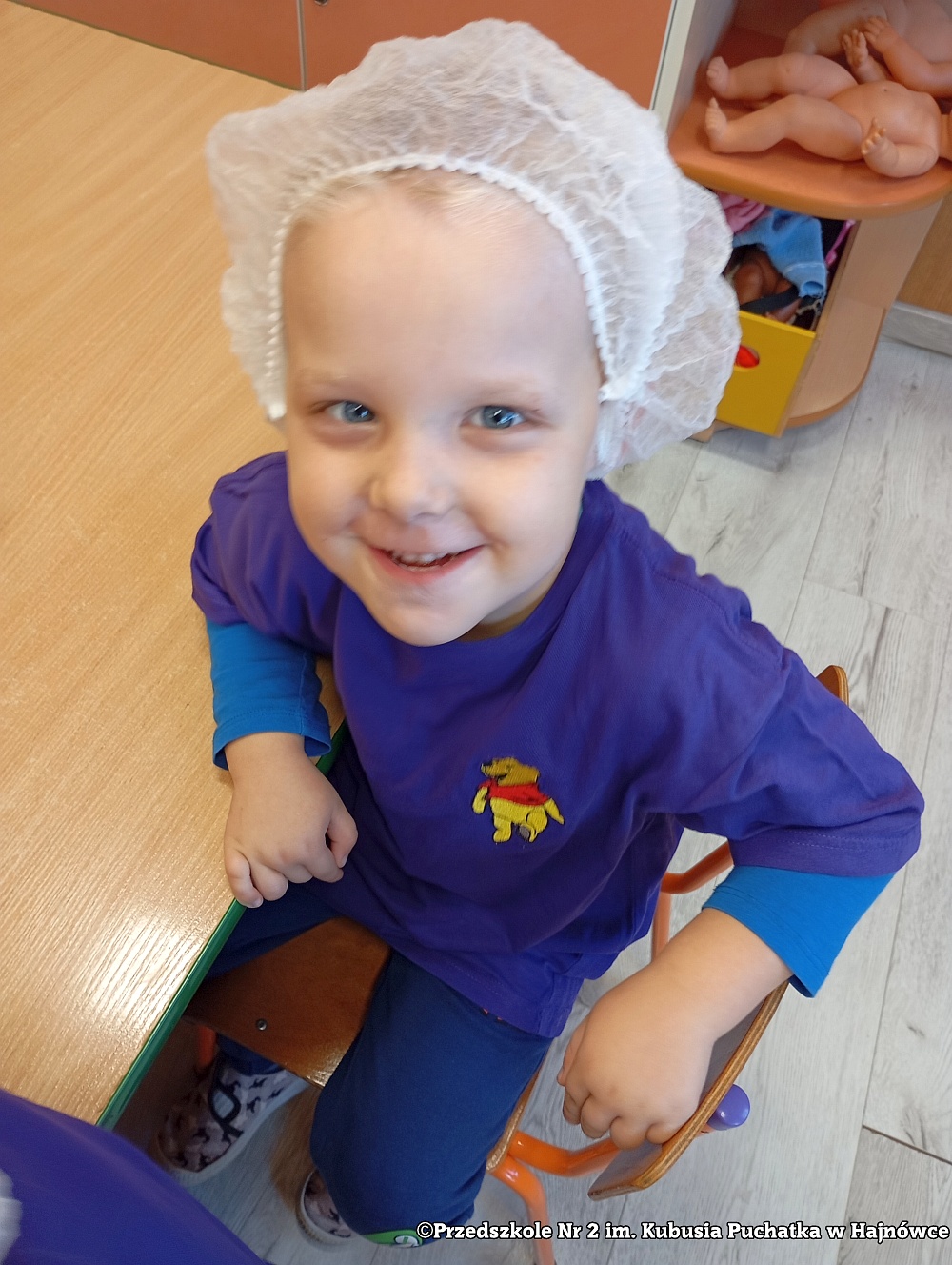 W grupie Króliczków odbyły się warsztaty na temat "Zawodowa przygoda". Przedszkolaki podczas zabawy poznały różne zawody, zgadywały, do jakiego zawodu pasują kolorowe przedmioty, wcielały się w rolę kucharza, lekarza czy strażaka, a także poznały nowoczesne profesje, takie jak projektant 3D.
