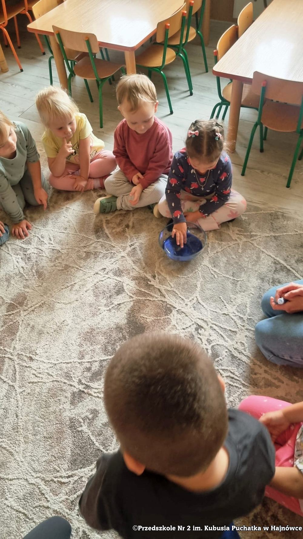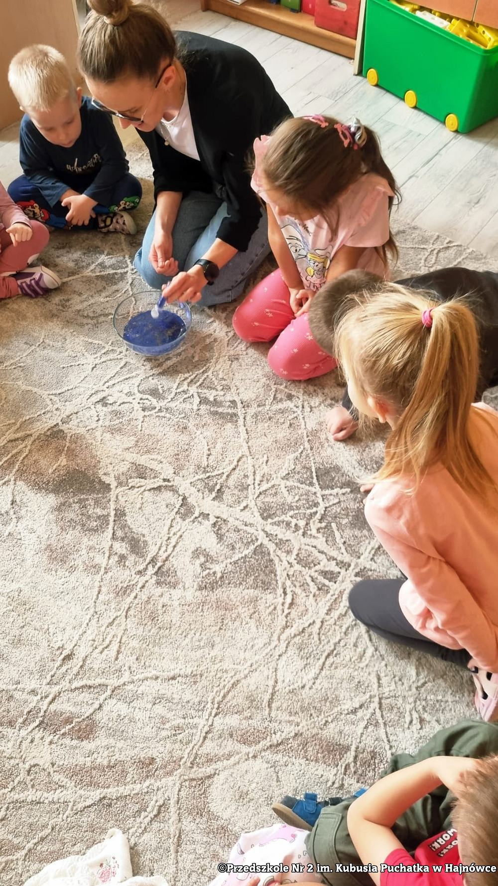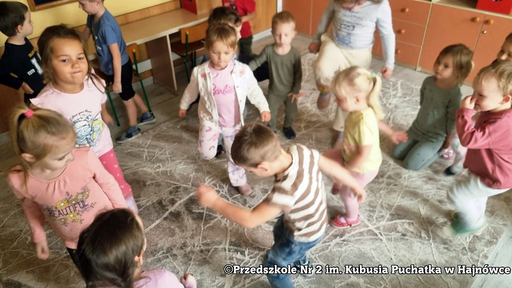 16 września w grupie „Króliczków” obchodziliśmy Międzynarodowy Dzień Kropki – święto kreatywności, odwagi i zabawy. Pięcio- i sześciolatki od samego rana odkrywały, że zwykła kropka może stać się początkiem wspaniałej przygody. Dzieci brały udział w różnych aktywnościach: Znajdowały pary kółek, ćwicząc spostrzegawczość i pamięć. Podczas zabaw ruchowych zamieniały się w odkrywców, którzy muszą sprytnie omijać kałuże. W muzycznych aktywnościach kropki stały się nutkami, a przedszkolaki tańczyły i poruszały się w rytm wesołych melodii. Dużo radości przyniosły także ćwiczenia z „kropkowaną” kostką, która wskazywała ilość zadań do wykonania – od klaskania do przysiadów i podskoków.